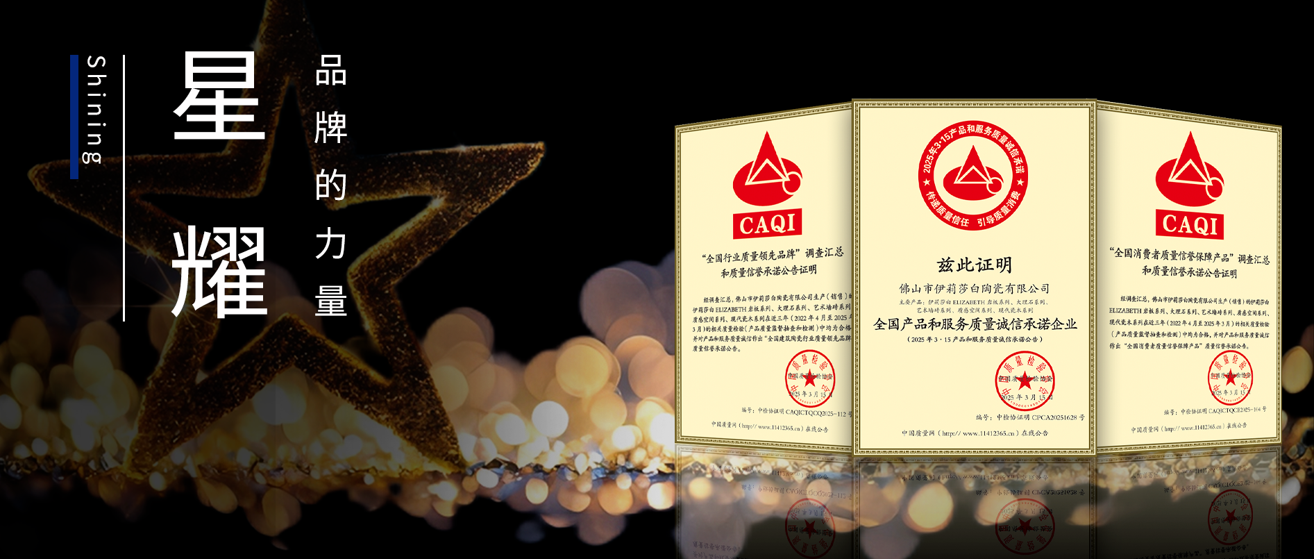 Shining星耀時刻 | 伊莉莎白瓷磚蟬聯中國質量檢驗協會3項重要殊榮